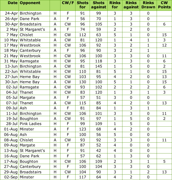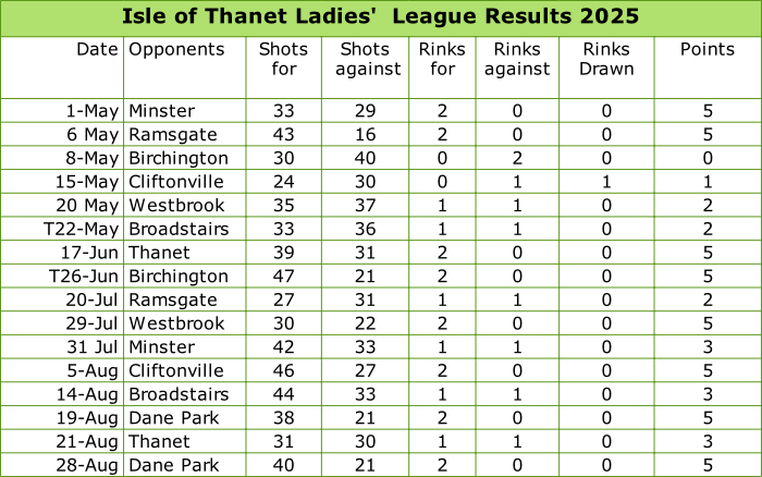 Isle Of Thanet Men’s Bowls League